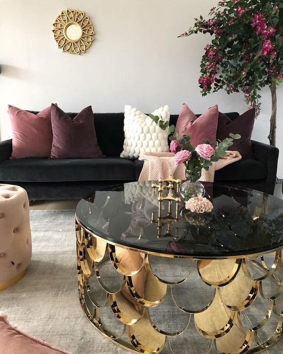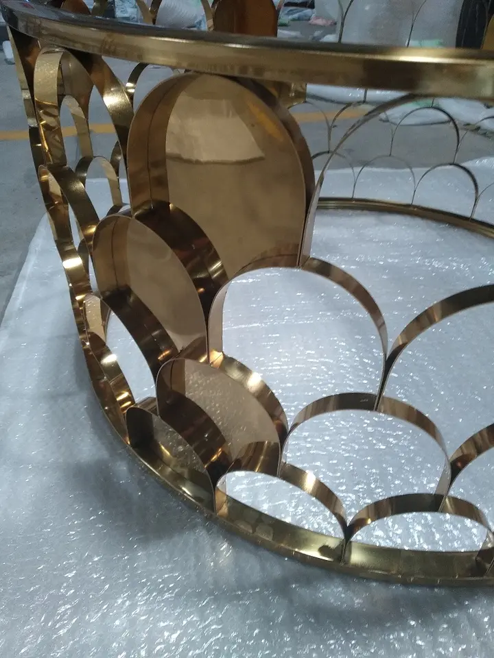 Modern Round Marble Table Top With Stainless Steel Frame Fish Scale Coffee Table For Home Coffee (Converted)